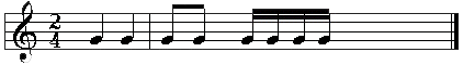 复拍子的概念就是在一小节之内,包括着两个或者两个以上的强拍子,(也就是由两个或者两个完全相同的单拍子,结合在一起的拍子,)叫做复拍子。但是这种强拍在力度上是有区别的,在这中复拍子中一般第二个出现的强拍叫做次强拍。因为是次强拍,因此在力度上要区别于第一拍,要比第一个强拍弱一些。下面我们举几个例子来说明: