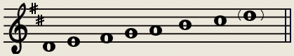 首先找到主音下面的小二度,D调的主音,自然是D,D的下面小二度是#C,然后根据音阶的音程关系来构成。