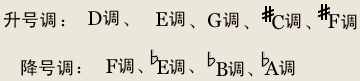 其它的调都是以此类推,由于主音的不同各个调的升降号也会不同的。