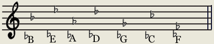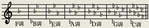 在降号调里,F调的调号是一个降号要死记,其余的降号调,从一个降号调降B开始,往上升纯四度就是降号调的次序。