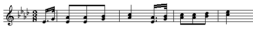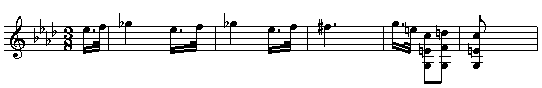 到184小节,进入第一主题的第四变奏部分,这里使用了柱式和弦的伴奏形式(例八),先在f 小调,后又转入降A大调,基本回到了主题的原貌。