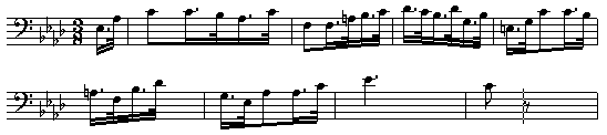 到第204小节中间结束了第四变奏,并在该小节最后一拍开始进入结尾,这里节奏稍快一些,是具有进行曲风格的尾声,由大管演奏主题一的动机(例九),