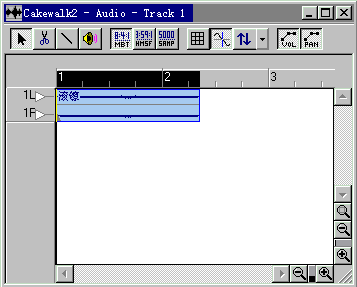 窗口中的按钮分别是:选择,分割,直线,监听,三种时间显示,网格精度设置,零点精度设置,换轨键,显示音量包络线,显示声相包络线。