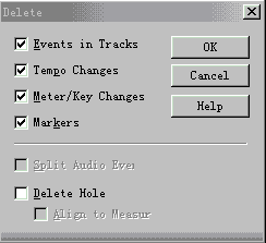 这里值得注意的是:如果你的选择了音频事件,千万注意是否切割音频;如果你想把剪切后的空小节去除,可以选择Delete Hole。