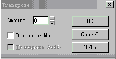 在Amount中输入的是一个数,可以是正数(即升调)。也可以是负数(即降调),如果输入1则为把当前调升高一个调(这是按全音模式,以8为一个循环)。如果你选择了Diatonic Ma..则会以按半音方式转调(以12为一个循环)。