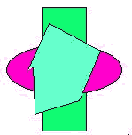 这样在运动的过程中,方块的运动速度最快,多边形的运动速度最慢,椭圆将赶上多边形,由于椭圆所处的层次级别低于多边形所处的层次级别,则多边形显示在椭圆的上方,覆盖了椭圆的部分图形,当方块赶上椭圆和多边形后,由于方块比它们两个的层次级别都低,所以方块处于最底层,被椭圆和多边形所覆盖。程序运行中的重叠效果。