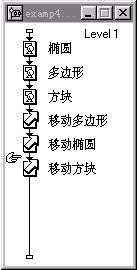 在这里,显示对象层次的级别只限于在运动过程中,也就是说,显示对象在运动的过程中遵循层次级别的重叠方式。当显示对象运动到目的地静止后,显示对象之间的重叠方式则不再遵循设定的层次级别方式,静止后的重叠方式由程序主流程线上【移位】设计按钮的先后位置决定(如图4-6所示)。