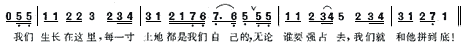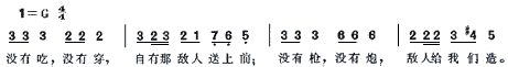 第二乐句再现了A段的第二乐句,从而与第一乐段形成统一。在这里,无比清晰地表达了游击战士抗战到底的决心。