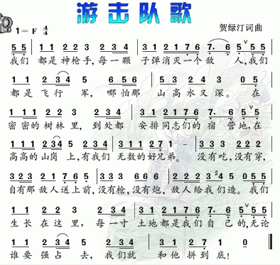 《游击队歌》作于1937年年底。当时,作者在救亡演剧一队工作。写此歌时,住在山西临汾八路军办事处。首次演出时,受到八路军总司令部高级将领的热烈欢迎。随后便流传到全国各地。歌曲初刊于1938年5月出版的《自由中国》第二号。同年夏天,在武汉改编为四部合唱。1942年拍摄的影片《自由中国》,曾用此歌作插曲。此外,曾为大型纪录片《华北是我们的》作配乐。1964年,大型音乐舞蹈史诗《东方红》用它作重要素材。至今,这首歌仍保持着久唱不衰的魅力。