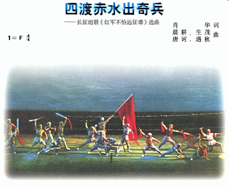 《四渡赤水出奇兵》为《长征组歌——红军不怕远征难》的第四曲,由两大部分组成。第一部分,先用女声领唱及女领众合的形式表现行军路途的艰难情景。