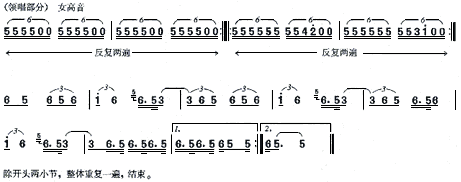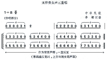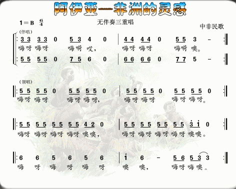 本课采用“黑色之音”演唱组的原始演唱录音。课本上和教学参考书上的乐谱根据音响纪录。为便于学生使用,课本采用了比较浅易的记谱方法。