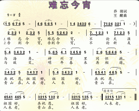 《难忘今宵》作于1985年,曾多次在大型电视文艺晚会中作为终曲而演出,以突出晚会的主题思想。