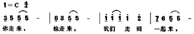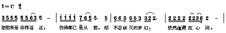 组歌的第二部分,即教材中选用的部分,其音乐为典型的A、B、A三部曲式。A部的女声齐唱带有温馨抒情的气氛: