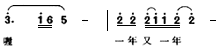 显得生动活泼,意蕴宏阔。组歌最后以合唱回到第一部分的副歌:“哦,一年又一年,我们走向明天。”结束句似有曲终意犹未尽之感。