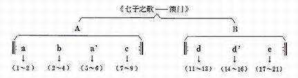 2.《七子之歌—澳门》为单二部曲式。第一乐段(第1~9小节)的旋律比较平稳。其第三乐句(第5、6小节)是第一乐句的变化重复。在这里,形成了本乐段的一个小高潮,仿佛一个失去母亲的孩子对思念中的母亲作着真诚的倾诉。第二乐段(第11小节之后)开始处就出现了一个六度大跳,且第一乐句的旋律多在高音区回转,加上强力度的处理要求,它好像是在呐喊,在表现一种盼望回归祖国的强烈感情。第二乐句是稍加变化的重复。它进一步使这种情绪变得更加浓烈。最后一个乐句深情而又肯定,把渴望回归的愿望表现得淋漓尽致。