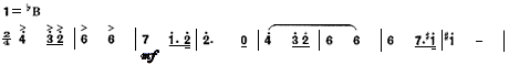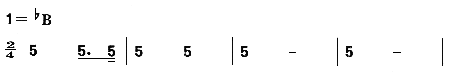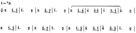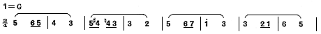然后是乐曲的中段,它转到了G大调,这个曲调是从A段发展而成的: