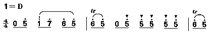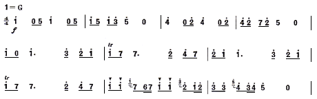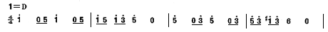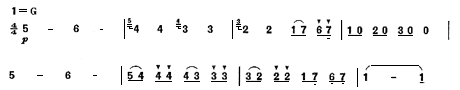 这段旋律精巧、活泼,每句的后半部分多用跳进写成。其二: