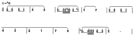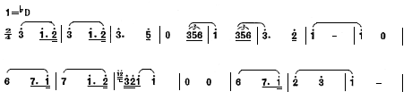 这段委婉的旋律,给人以忧郁、沉思的印象,情绪显得十分压抑。