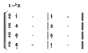 乐曲的第一部分由三个乐段构成。第一乐段的旋律用变奏的手法重复了一遍: