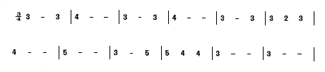学唱之初要鼓励学生划拍唱歌。唱会歌时要加入伴奏。三拍划拍最初可以用划三角形练习,即: