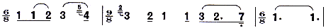 歌曲用了C小调,6/8、9/8拍,为一段体结构(单一部曲式)。这首歌曲用新疆民歌素材创作而成,体现出地区的民族的特色,而6/8、9/8拍及小调性的选择,又决定了这首歌曲的抒情特色。第一乐句是以级进的音乐形态写成的音乐主题: