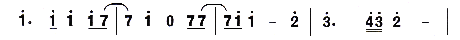 好似倾诉性的对话,有点激动,两主音与导音的交替进行及中音与下属音的进行,更突出抒发了这种感情。 第二乐句是音乐主题的发展,结束在属音“5”上,构成乐段的开放性结束,给人以不稳定之感,以感叹的语气表达对恋人的真情。而乐段的变化重复,使这种感情进一步得到抒发。