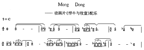 标题为“Mong Dong”的音乐是电影动画片《悍牛与牧童》完整的配乐,它始终配合动画片牧童驯服悍牛的剧情发展。