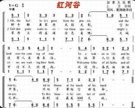 《红河谷》是流传于北美洲红河一带的民歌。它带有美国北方民歌的某些风格特色,在加拿大南部也很流行,因而加拿大人认为它是一首加拿大民歌。这首歌传入我国后,有人称之为加拿大民歌,也有人称之为美国民歌。歌词为J.卫尔所填(卫尔这个人情况不详),《红河谷》的歌词有数种不同的版本,这里采用的是最原始的版本。