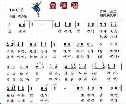《翁嘿呀》是吉林延边朝鲜族的一首劳动歌曲,因歌中用了很有特色的衬词“翁嘿呀”而得名。朝鲜族农民在集体劳动中,合着劳动节奏,“一领众和”地歌唱,有利于调节精神,统一意志。歌词随兴而编,领唱者唱正词,众人唱衬词。表现了丰收时节的打谷场上,人们载歌载舞、喜获劳动果实的情景,呈现一派热火朝天的劳动景象。