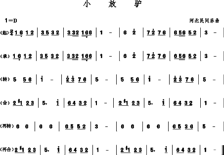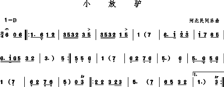 《小放驴》是一首在河北广为流传的民间乐曲。其音乐体裁属于河北吹歌。