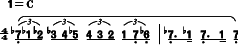 表现火车高速向前奔驰的曲调,先后几次出现: