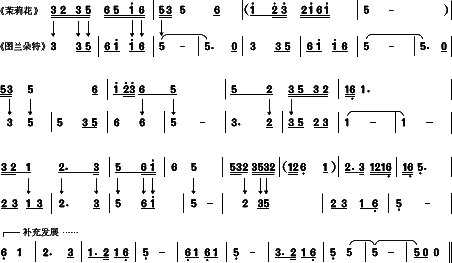 ”这样的进行特点作了补充性发展,结束全曲。 谱例对照:
