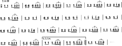 在高潮突然切住后,尾声缓缓流出,其音调是第二段一个乐句的紧缩,最后结束在宫音上,出人意外又耐人寻味。