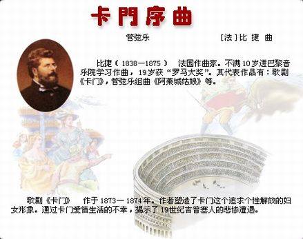 这是歌剧《卡门》开场前的一首管弦乐曲。在音乐会演出时,常常略去其中的最后一个主题。