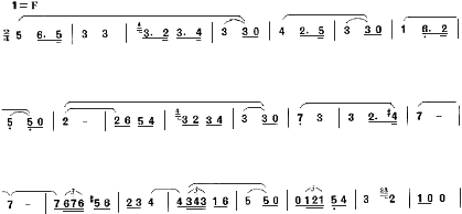 这段旋律为F大调、2/4拍,具有进行曲的特点。