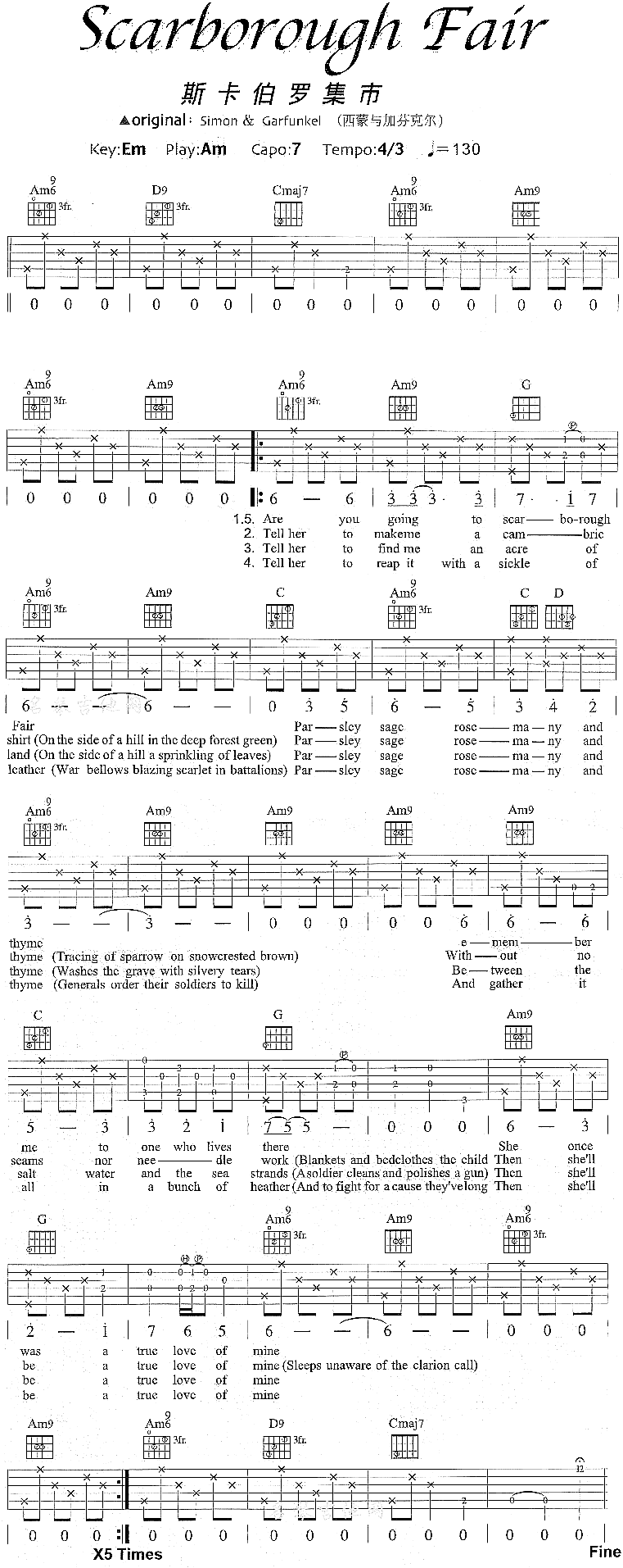 >> Scarborough Fair(斯卡伯罗集市)-欧美(吉他谱)