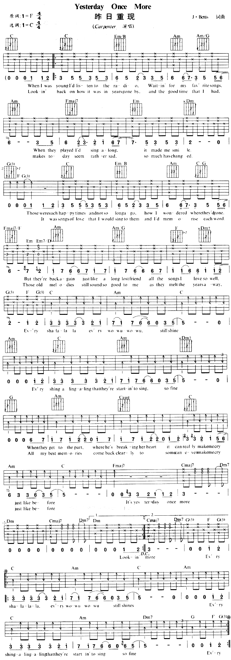 >> Yesterday Once More(昨日重现)-欧美(吉他谱)