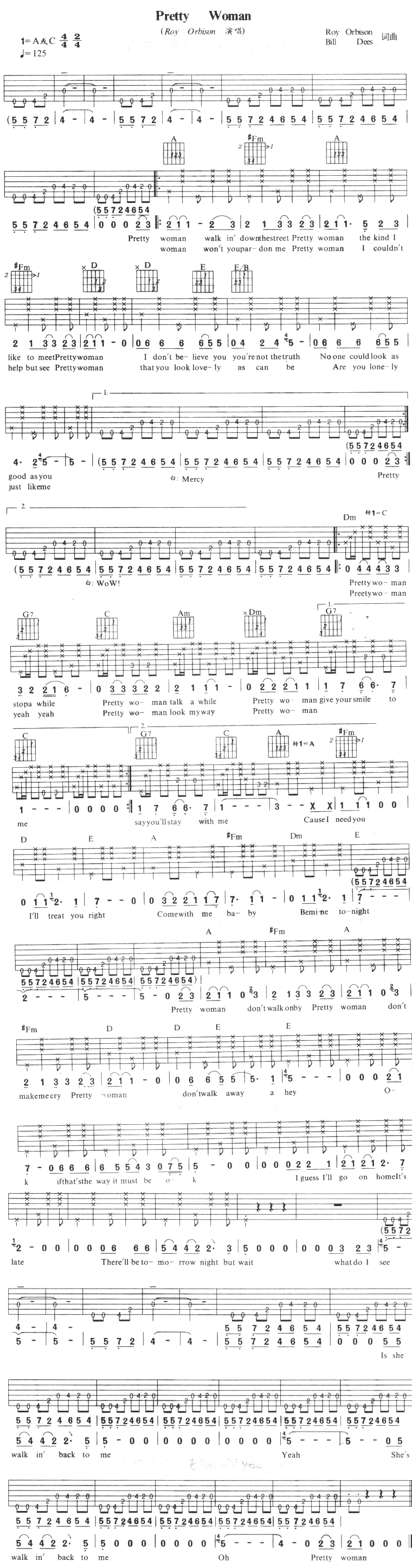 >> Pretty Woman(风月俏佳人)-欧美(吉他谱)