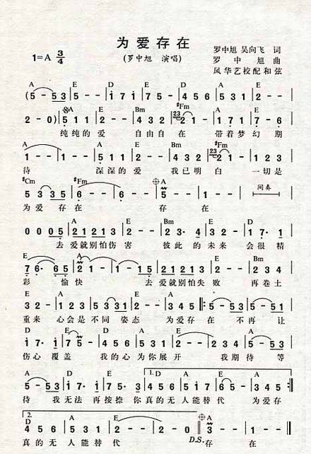 >> 为爱存在-罗中旭(简谱)