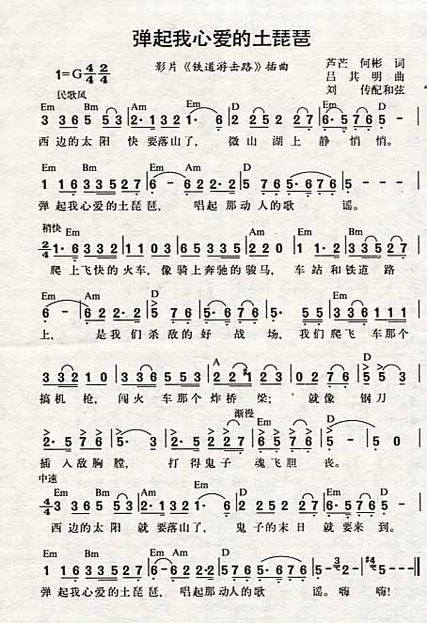 弹起我心爱的土琵琶-铁道游击队(简谱)