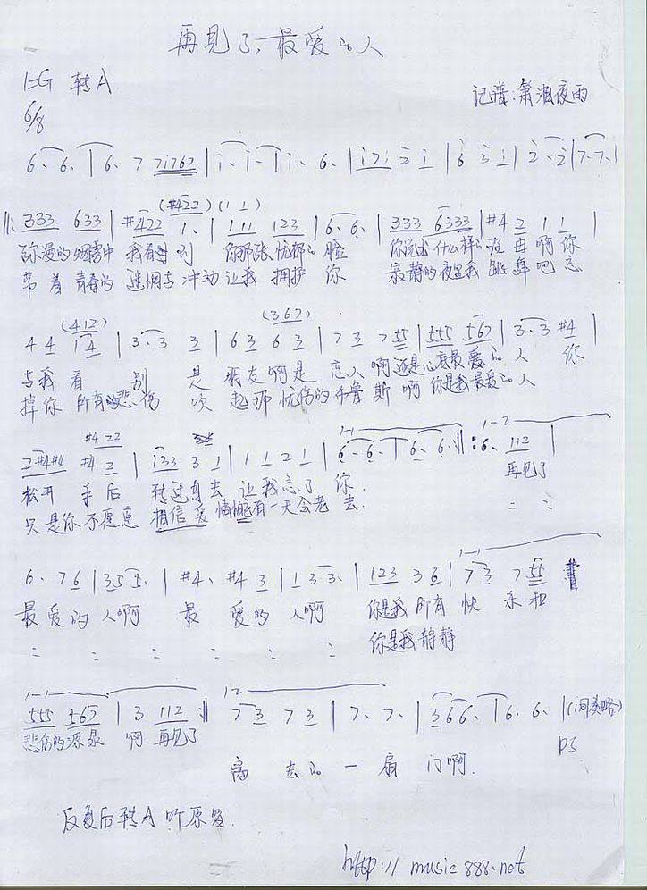 >> 再见了最爱的人-水木年华[简谱]