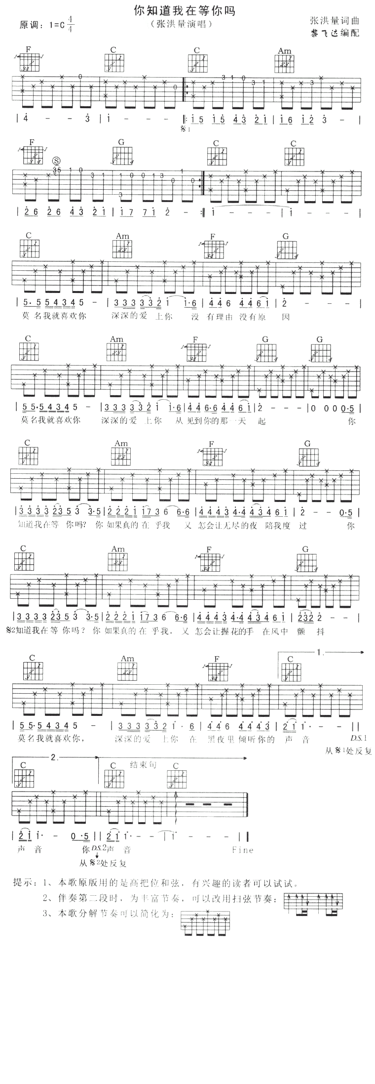 >> 你知道我在等你吗-张洪量(吉他谱)