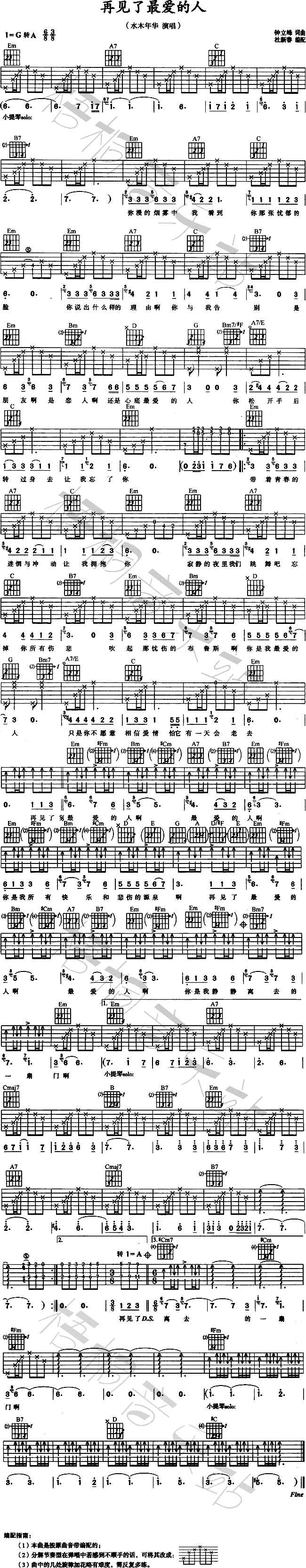 >> 再见了最爱的人-水木年华(吉他谱)