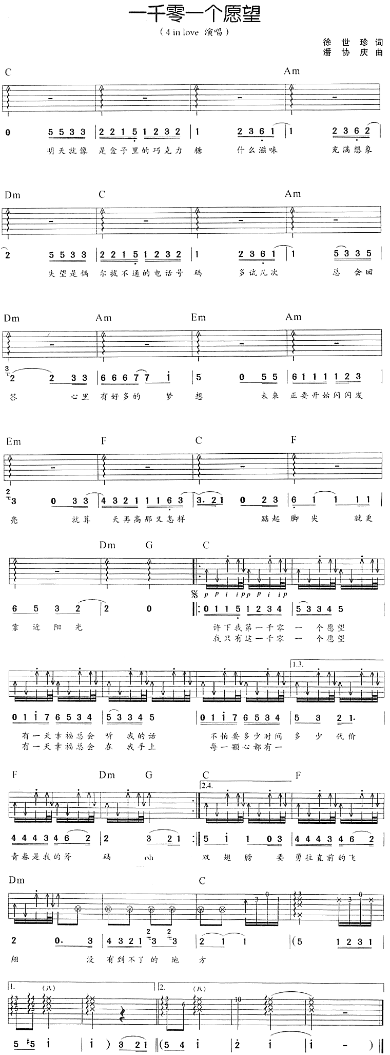 一千零一个愿望-4 in love(吉他谱)