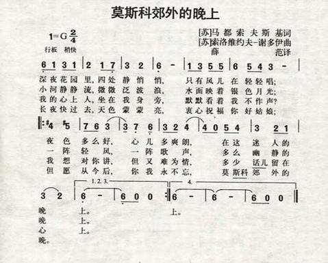 >> 莫斯科郊外的晚上-外国民歌(简谱)