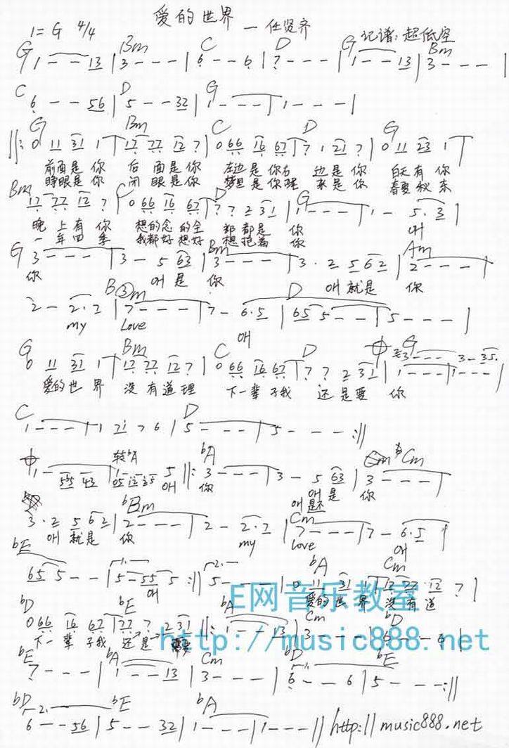 >> 爱的世界-任贤齐(简谱)