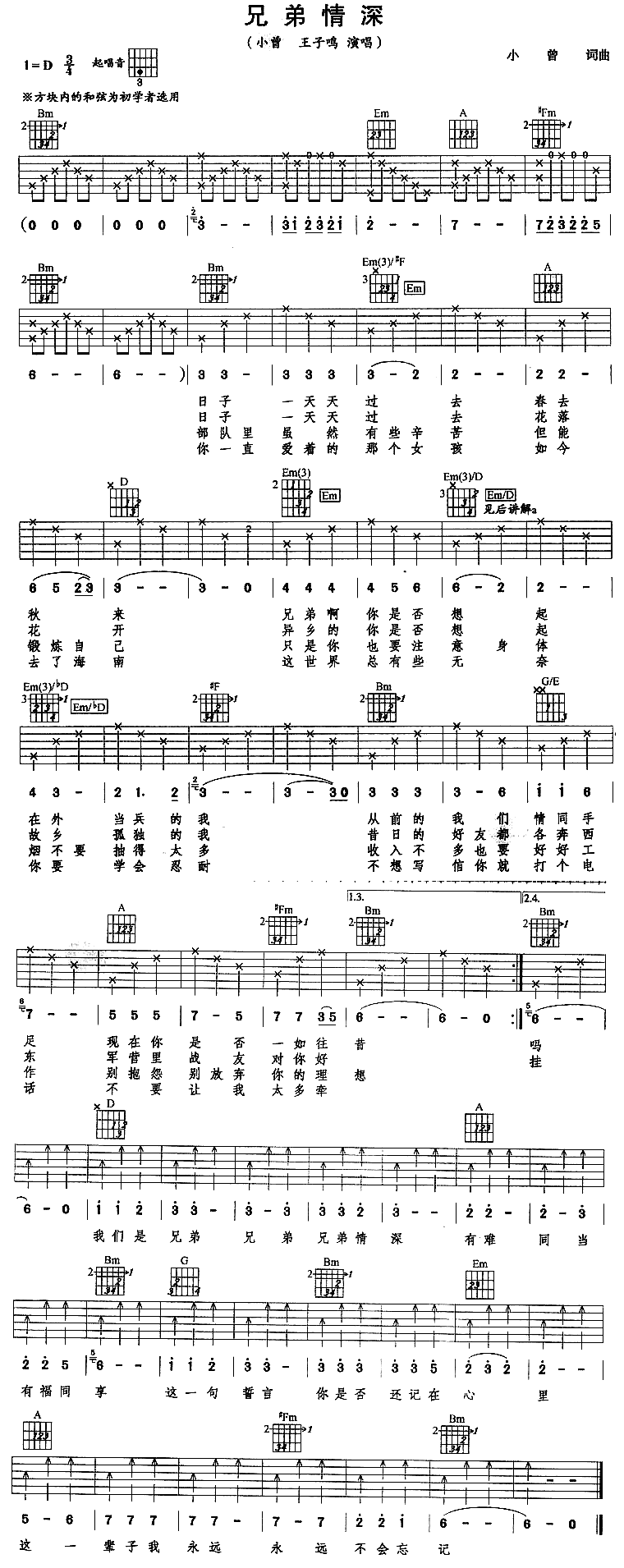 兄弟情深-小曾 王子鸣(吉他谱)