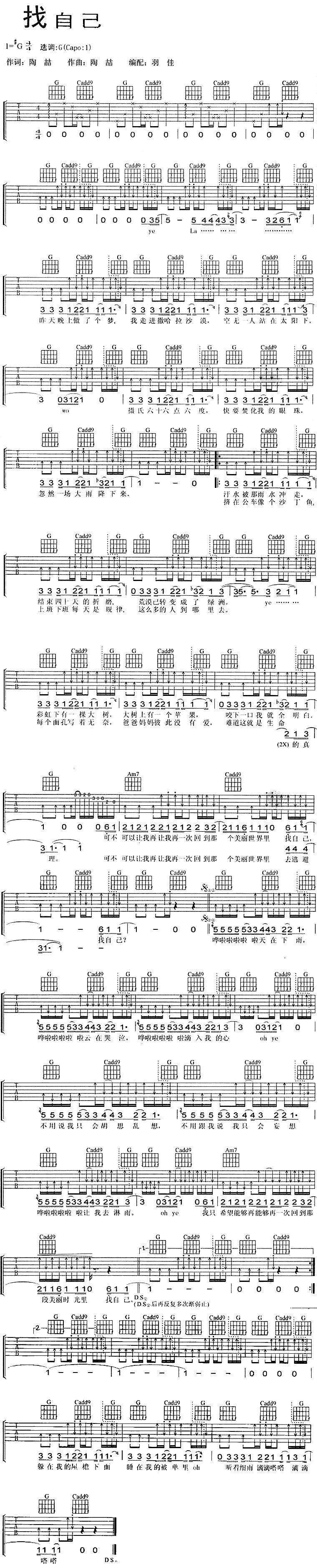 找自己-陶喆(吉他谱)