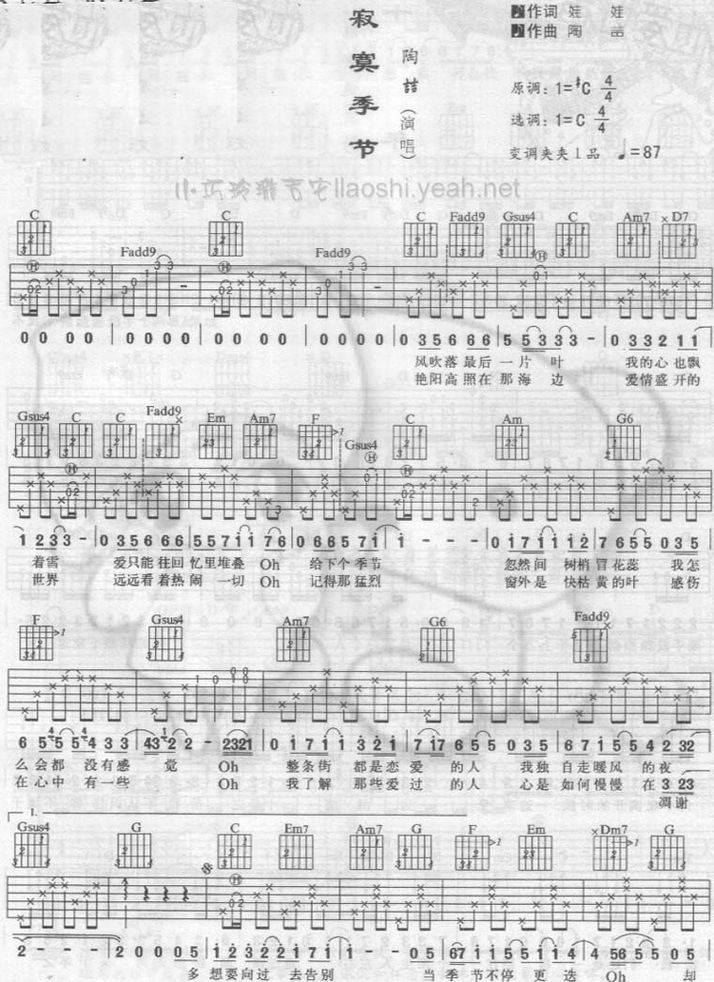 寂寞的季节-陶喆(吉他谱_版本2)
