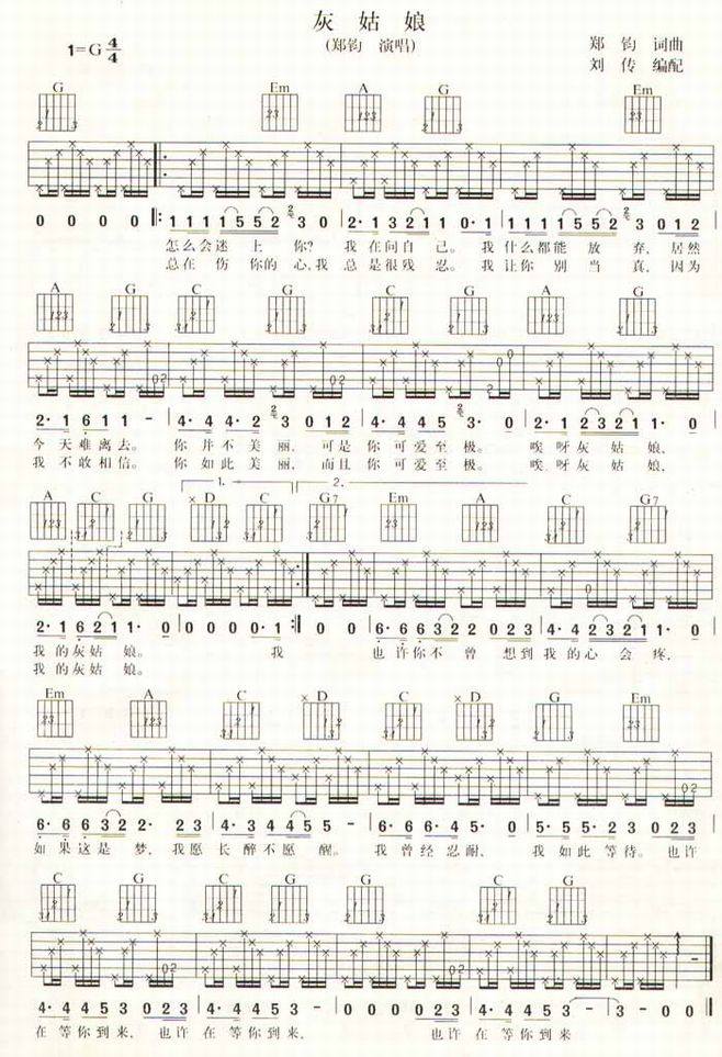 灰姑娘-郑钧(双吉他谱)